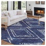 ReaLife Machine Washable Area Rug - Living Room Bedroom Bathroom Kitchen Entryway Office - Non Slip Low Pile Stain Resistant Premium - Moroccan Diamond Tribal - Jax - Blue 4' x 6'