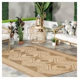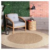 nuLOOM Asha Simple Border Indoor/Outdoor Area Rug - 7 Round Indoor/Outdoor Area Rug Casual Light Brown/Ivory Rugs for Living Room Patio Deck Front Porch Kitchen, 6' 7"