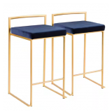 Gold Counter Stool with Blue Velvet Cushion (Set of 2)