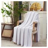 Longhui bedding Chunky Cable Knit Throw Blanket Lightweight White 100% Organic Cotton Blanket for Sofa Couch Bed Baby Nursery, Rustic Shabby Chic Modern Farmhouse, 60” x 80” Give Laundering Bag