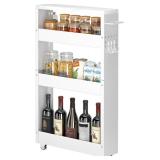Slim Storage Cart, 4-Tier Kitchen Rolling Cart Narrow Storage Cabinet with Handle & Wheels, Metal Rolling Shelf Unit for Kitchen Bathroom Laundry Small Places(5 in Width/White)