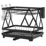 Dish Drying Rack Dish Racks for Kitchen Counter Sink with Drainboard Black Rustproof Drying Rack Kitchen
