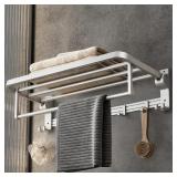 SAVING SPACE & FASHION DESIGN】: You can get bath towel rail with double rods, which are very flexible to use. There are double rods to maximize the use of your wall and storage twice as much stuff. Fashion design suitable for installation in bathrooms, kitchens, entrances, wardrobes, back doors, etc. ⭐【HIGH and LOW ROD DESIGN】: The double towel hanger total length is 23.25 inches, available length is 20.5 inches. Long enough for you to hang bath towel or even 3 hand towels at the same time. Staggered rod design, The distance between the two rods is wider, convenient to take the towel and towels can dry quickly.