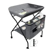 Holy Cat Baby Portable Changing Table with Wheels Adjustable Height Folding Infant Diaper Station Mobile Nursery Stand with Newborn Lightweight Large Storage Rack - Grey