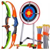 Bow and Arrow for Kids, Archery Toy Set, 2 Bows & 1 Blowing Bow & 12 Arrows & 5 Quivers & Standing Target, Outdoor Toys for Children Boys Girls