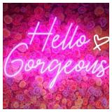 DAKABUKA Hello Gorgeous Neon Sign Hello Beautiful Pink LED Neon Lights for Home Wedding Birthday Backdrop Bacelorette Party Wth Dimmable Switch(5V,16.5X10.6inches)