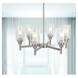 VINLUZ 6 Light Contemporary Chandelier Brushed Nickel Modern Pendant Lighting
