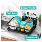 【Sturdy Structure and Easy Installation】 black drying rack kitchen consists of bowls & cups area, dish area, a three-hole cutlery holder and water trays with drainage. All components are detachable, and installation can be completed within 1 minute without any tools. The sturdy structure of our dish drainers for kitchen counter ensures stability and durability.