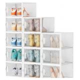 Shoe Storage, 12 Pack X-Large Shoe Organizer for Closet, Shoe Boxes Clear Plastic Stackable Shoe Storage Boxes for Size 13