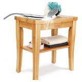 Bamboo Shower Bench for Inside Shower Stool for Shaving Legs Waterproof,Shower Seat for Elderly,Handicap,Injured,Disabled,Spa Seat Bath Stool for Bathroom Anti Slip for Safety with Storage Shelf,15"