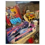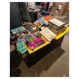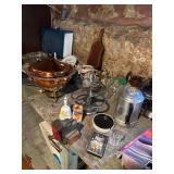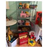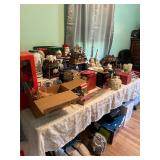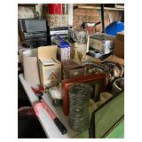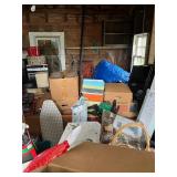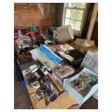 Diggable basement and garage!! China closet, corner curio, MCM style table & chairs, 50's mirror, tile top kitchen table & chairs, traditional dining room table & chairs with hutch cabinet, complete master bedroom set, wardrobe, TV stands, assorted tables, chairs, retro bar stools, bar signs & barware, Caloric stove, freezer, snack tables, wood & glass shelf, TV's, AC units, lots of vintage electronics, lots of kitware, Kitchen Aide, Atari, toys, shoes & bags, costume jewelry, Singer, linens & more to uncover! |