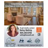 BONDED & INSURED! Selling the South in Jacksonville Contact: Betsy Waltrip Phone: 904-397-4748 Email: betsy@sellingthesouth.net Website: www.facebook.com/sellingthesouth.net EstateSale.com ID#: 5240 View company information and listings |