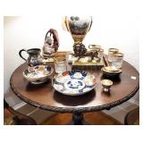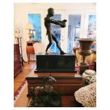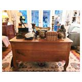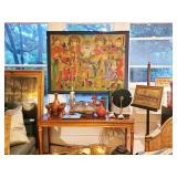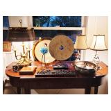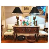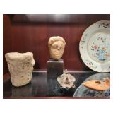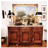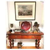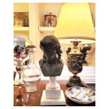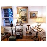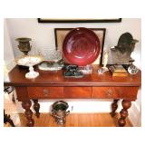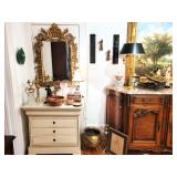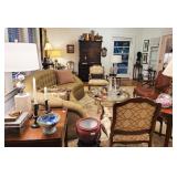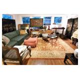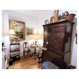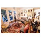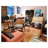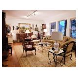 Highlights include: antique bronze statues, English antique furniture, Geo chest-on-chest, Geo bookcase, 19th French marble top sideboard, Circa 1500 English hunt board, 2500 years old Roman and Greek artifacts, 3000 years old Egyptian sandstone head, many pre-Columbian objects, oil paintings, gilt carved mirrors, Waterford and Baccarat lamps, leather top ball and claw desk, Council breakfront china cabinet, sofas French armchairs, geos, breakfast table, ball and claw side chairs, Baker side tables, 2 four poster beds and much more!