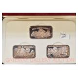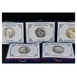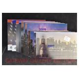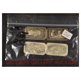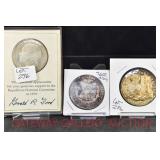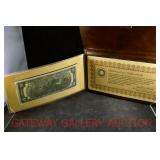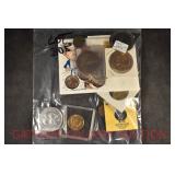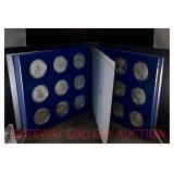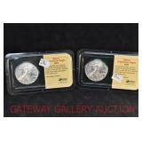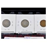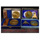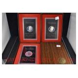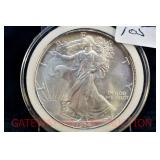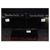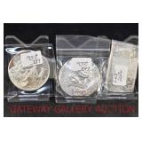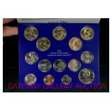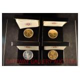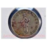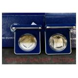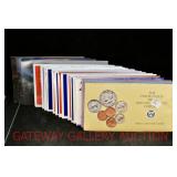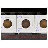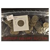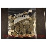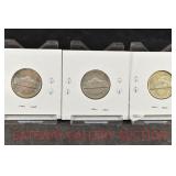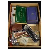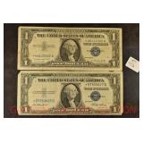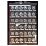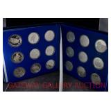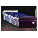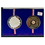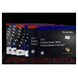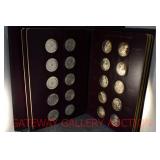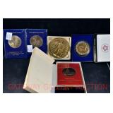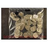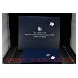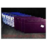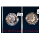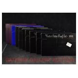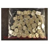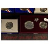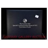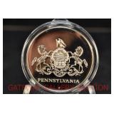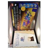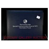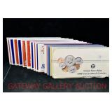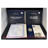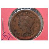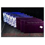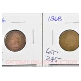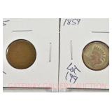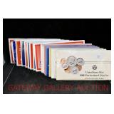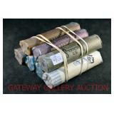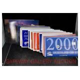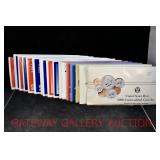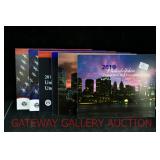Coins & Currency Catalog 1 (4) Rolls Steel Cents: 1943 2 (273) Wheat Cents: 1945-1958 3 (233) Wheat Cents: 1914-1944 4 (1986) Wheat Cents: 1911-1942 5 Large Cent: 1843 (VG) 6 Large Cent: 1853 (VG) 7 Indian Cent: 1906 (XF) 8 (105) Indian Cents: (AG-VG) 9 (105) Indian Cents: (AG-VG) 10 (277) Jefferson Nickels: 1938-1941 11 (266) Jefferson Nickels: 1940-1952 12 (285) Jefferson Nickels: 1939-1965 13 (10) Mint Sets: 1973; 1977; 1978; 1979; 1980; 1981; 1984; 1985; 1986; 1987 14 (10) Mint Sets: 1988; 1989; 1990; 2000; 2001; 2002; 2003; 2004; 2005; 2006 15 (3) Mint Sets: 2007; 2008; 2009 16 (4) Mint Sets: 2010; 2011; 2013; 2014 17 Mint Set: 2012 18 (10) Proof Sets: 1972; 1973; 1974; 1975; 1976; 1977; 1978; 1980; 1981; 1982 19 (10) Proof Sets: 1982; 1983; 1984; 1985; 1986; 1987; 1989; 1990; 2000-S (10-pc set) 20 (10) Proof Sets: 1973; 1974; 1976; 1977; 2001-S (10-pc set); 2002-S (10-pc set); 2003-S (10-pc set); 2004-S (11-pc set); 2005-S (11-pc set); 2006-S (10-pc set) 21 (3) Proof Sets: 2007-S (14-pc set); 2008-S (15 pc set); 2009 (18-pc set) 22 Proof Set: 2012-S (14-pc set) 23 (3) 2¢ Pieces: (2) 1864; 1866 (AG) (AG) (G) 24 2¢ Piece: 1864, large numbers (AU) 25 Gold: American Eagle $5.00, 1/10 oz. (MS) 26 (189) Buffalo Nickels: some no dates 27 Wheat Cents: 1 lbs., 9% 28 (82) V-Nickels: 1893-1912-D (AG-VG) 29 (83) Jefferson Wartime Nickels: silver 30 (274) Jefferson Nickels: 1938-1953 31 (4) Inaugural Medals: (2) 1973 Nixon/Agnes (Proof); (2) 1977 Jimmy Carter (bronze/antique finish) 32 (3) Medals: 1981 Reagan inauguration (bronze); 1980 K. Taylor Canadian Ambassador (bronze); Donna Pope director of US Mint (bronze) 33 (4) Inaugural Medals: 1969 Nixon (bronze); 1981 Reagan, 1st inauguration (bronze); 1974 G. Ford (bronze); 1985 Reagan/Bush, 2nd inauguration (bronze) 34 (5) Inaugural Medals: 1974 G. Ford (bronze); 1981 Reagan, 1st inauguration (bronze); 1985 Reagan/Bush, 2nd inauguration (bronze); (2) 1989 Bush eyewitness (bronze Proof) 35 Assorted Lot: American Legion school award to W.L. Hess, 1934, bronze; (2) American Legion 25th Anniversary D-Day, 1944-1969 (UNC); 1972 Bicentennial commemorative medal; 1971 1st annual Christmas White House Nixon medal (Proof) 36 (88) Jefferson War Nickels: silver 37 (150) Roosevelt Dimes: silver 38 (80) Washington Quarters: silver 39 (14) Walking Liberty Half Dollars: silver 40 Mystery Lot of Coins: 5 lbs. of coins in a Lebanon Valley Bank jug (jug will need to be broken to get all the coins out) 41 (10) Mint Sets: 1973; 1977; 1978; 1979; 1980; 1981; 1984; 1985; 1986; 1987 42 (10) Mint Sets: 1988; 1989; 1990; 2000 (20-pc set); 2001 (20-pc set); 2002 (20-pc set); 2003 (20-pc set); 2004 (22-pc set); 2005 (22-pc set); 2006 (20-pc set) 43 (3) Mint Sets: 2007 (28-pc set); 2008 (28-pc set); 2009 (36-pc set) 44 (3) Mint Sets: 2010 (28-pc set); 2011 (28-pc set); 2013 (28-pc set) 45 (3) Mint Sets: 2014 (28-pc set); 2015 (28-pc set); 2016 (26-pc set) 46 Mint Set: 2012 (28-pc set) 47 (10) Mint Sets: 1977; 1978; 1979; 1980; 1981; 1984; 1985; 1986; 1987; 1988 48 (10) Mint Sets: 1988; 1989; 1990; 2000 (20-pc set); 2001 (20-pc set); 2002 (20-pc set); 2003 (20-pc set); 2004 (22-pc set); 2005 (22-pc set); 2006 (20-pc set) 49 (3) Mint Sets: 2017 (20-pc set); 2018 (20-pc set); 2019 (21-pc set) 50 Gold: 2003 American Eagle $10.00 1/4 oz. (MS) 51 Capped Bust Dime: 1836 (AG) 52 Civil War Token: 1863, Union For (unable to make out the rest) (AG-G) 53 Depression Token: Brother Can You Spare A Dime (VF-XF) 54 (268) Jefferson Nickels: 1939-1963 55 (270) Jefferson Nickels: 1939-1955 56 (267) Jefferson Nickels: 1939-1964 57 (30) Commemorative Issues Sterling Silver: The Franklin Mint special commemorative issues of 1970 1st edition proofs, solid sterling silver 58 (36) Commemorative Issues Sterling Silver: The Franklin Mint special commemorative issues of 1971 1st edition proofs, solid sterling silver 59 (36) Commemorative Issues Sterling Silver: The Franklin Mint special commemorative issues of 1972 1st edition proofs, solid sterling silver 60 Assorted Lot: 1961-D half mint set; 1964 Kennedy silver half dollar & Lincoln cent, in folio; 1 oz. sterling silver Happy Holidays bar, Silvertown 61 (87) Jefferson War Nickels: silver 62 (3) US Bicentennial Silver Proof Sets: 1776-1976 63 (2) Eisenhower US Proof Dollars: 1971-S 64 (5) George Washington Commemorative Silver Half Dollar: 1982-D (UNC) 65 (5) George Washington Commemorative Silver Half Dollar: 1982-S (Proof) 66 (2) Prestige Sets: 1987-S constitution dollar (Proof); 1989-S congressional dollar (Proof) 67 $1.00 Silver Certificate: series 1899, "black eagle note," Lincoln/Grant, Elliot-White, blue (VF+) 68 Washington $1.00 Silver Certificate: series 1928-E, Julian-Morgenthau (VF) 69 (13) Washington $1.00 Silver Certificates: series 1935-A; (2) 1935-D; (4) 1935-E; (2) 1935-G; (4) 1935-F (VG-F) 70 (13) Washington $1.00 Silver Certificates: series 1957; (3) 1957-A; (9) 1957-B (VG-VF) 71 Jefferson $2.00 US Note: series 1953-A, "star note," Priest-Anderson (VF) 72 (2) Jefferson $2.00 Federal Reserve Note: series 1976, Neff-Simon (UNC) 73 Mercury Dime: 1945, micro S (VF) 74 V-Nickels & Lincoln Cents: (2) V-nickels, 1890, 1905 (AG) (XF); (3) Lincoln cents, 1911, 1956-D, 1982 (XF) (AU) (MS) 75 Gold: 1852 Liberty Head 2 1/2 dollar (VF-XF) 76 (10) Proof Sets: 1974; 1976; 1977; 1978; 1980; 1981; 1982; 1983; 1984; 1985 77 (10) Proof Sets: 1986; 1987; 1988; 1989; 1990; 2000-S (10-pc set); 2001-S (10-pc set); 2003-S (10-pc set); 2004-S (11-pc set); 2005-S (11-pc set) 78 (3) Proof Sets: 2006-S (10-pc set); 2007-S (14-pc set); 2011-S (14-pc set) 79 (3) Proof Sets: 2009-S (18-pc set); 2010-S (14-pc set); 2013-S (14-pc set) 80 Proof Set: 2012-S (14-pc set) 81 (3) Proof Sets: 2008-S (14-pc set); 2014-S (14-pc set); 2015-S (14-pc set) 82 (10) Proof Sets: 1974; 1976; 1977; 1978; 1980; 1981; 1982; 1983; 1984; 1985 83 (10) Proof Sets: 1986; 1987; 1988; 1989; 1990; 2000 (10-pc set); 2001 (10-pc set); 2002 (10-pc set); 2003 (10-pc set); 2004 (11-pc set) 84 