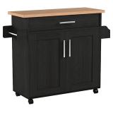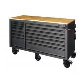 Tool Storage 62 in. W Heavy Duty Matte Black Mobile Workbench Cabinet with Adjustable Height Wood Top