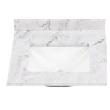 - White artificial carrara marble vanity top with white rectangle basin comes pre-assembled