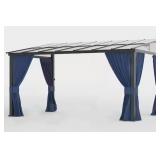 (109) 10 ft. x 14 ft. Gray Hardtop Sloping Pitched Roof Gazebo with Curtain Navy Blue