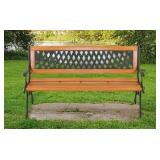Weave design on the seat back lends traditional charm to your garden with horizontal seat slats in a gentle curve to offer great comfort. Cast iron construction and weather-resistant hardwood provides years of durability as well as easy maintenance. The bench is easy to assemble.