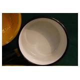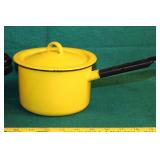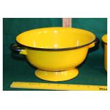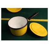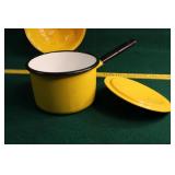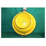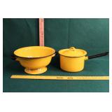 45 - Yellow Enamel Ware Strainer & Sauce Pot w/ Lid