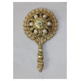 33 - Antique Round Toledo Plated Framed Mirror The mirror itself is just dirty in the pictures.