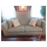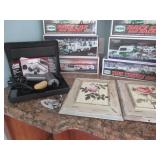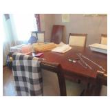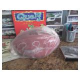 Sorry home owner pulled t.v. out of sale.Official Wilson football signed by Boom's Esiason #7, Barbie Dolls, Hess Trucks Dining room table, chairs, two leaf's, pads, Queen poster bed, night stand, armoire,lamps, kitchen items, Samsung 60in smart t.v. t.v. cabinet, free standing large mirror, tote bags, handbags, wall unit, corella dish set, serving dishes, artwork, home decor, small vintage side table with matching mirror. Side cabinet marble top, sofa with matching love seat, side chair, end table with matching, cocktail table, and console table, area rugs, artificial tall tree, Asian fish bowl, mirrors, drapes, curtains, games, adult games, reading books, book shelve, picture frames, throw pillows, bedding, chess set from Mexico, decorative bottles, cleaning products Family room sofa set, sofa, ottoman, oversized chair, outdoor items, golf clubs, golf bags, accessories, weight set with bench, seasonal items, Lawn mower Troy Built 21in, power washer, rubber maid storage bin, bins, ladders, Coleman large cooler, planters, shepherd hooks, Sport 20 SV Sears luggage carrier, etc, Tons of bric a brac |