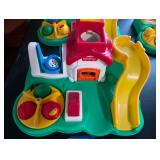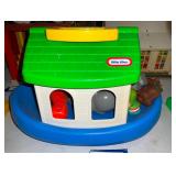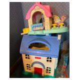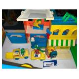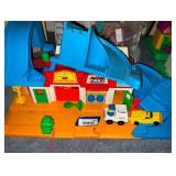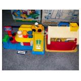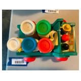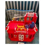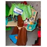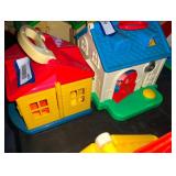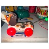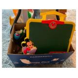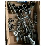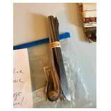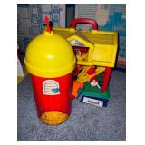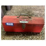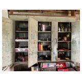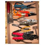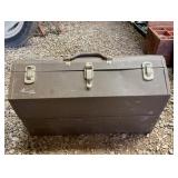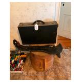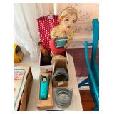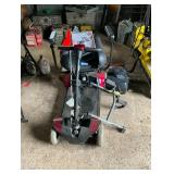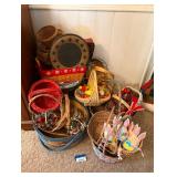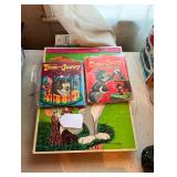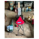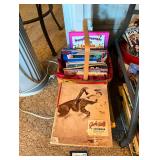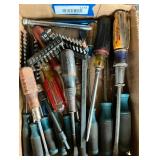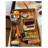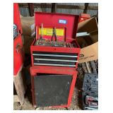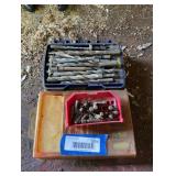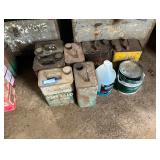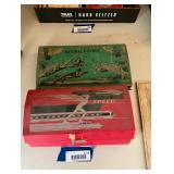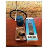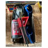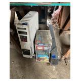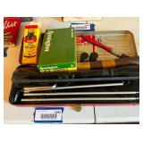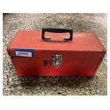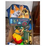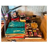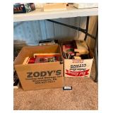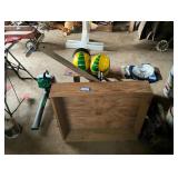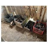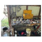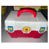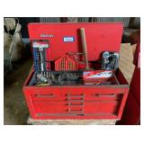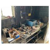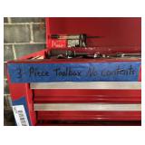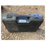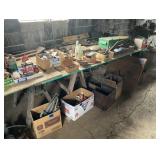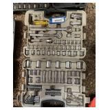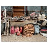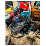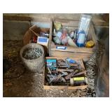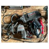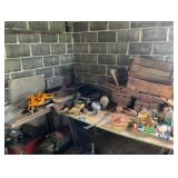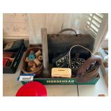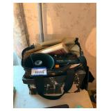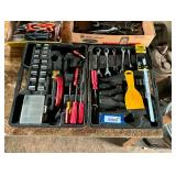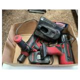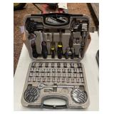 Black and Decker cordless drill, tool kit, duct tape, misc