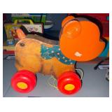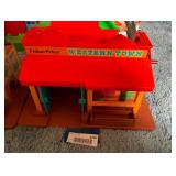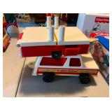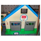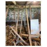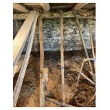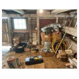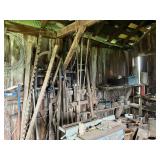Antique gas pump in the rafters. Needs picked up at end of auction bring plenty of help and a ladder.