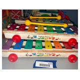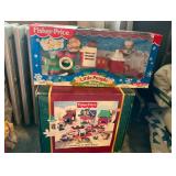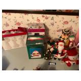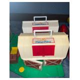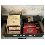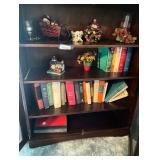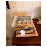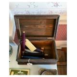 Hallet Davis and Co antique player piano w/ bench, player rolls, music books - top contents not included