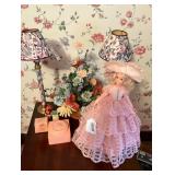 Piano lamp and linen w/ crocheted trim 28.5 x 58 x 54.5 4814