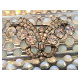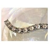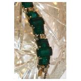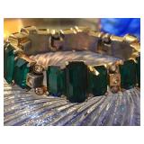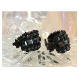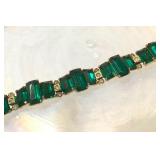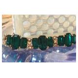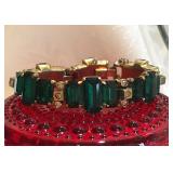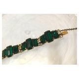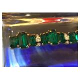 Art Deco Early Eisenberg Original Rhinestone Bracelet Couture Designer St. John for Saks Fifth Avenue Black Crystal Glass Enamel Earrings Early Unsigned Eisenberg Emerald Green Bracelet & Ice Brooch