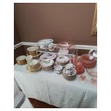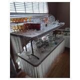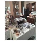 This sale has a little bit of everything... Living Room: 2 upholstered arm chairs, small round end table, plant stand, Ethan Allen Camelback sofa, great magazine side table, Ridgeway Grandfather clock with side display cabinets and vintage entry way table on wheels Dining Room: Vintage amber glassware, Nikko (secret garden), Haviland Limoges Bergere, Lenox (Springfield), Homer Laughlin Eggshell (Georgian), Royal Worchester (Everham) and Pink Fostoria China. China, crystal, silverplate, cut glass, collectibles and much more. Towle silverplate punch bowl cups, vintage webster-wilcox silverplate punch bowl, Grand Dining Room set: 6 side chairs and 2 all leather arm chairs. Table is 86" without the 3 leaves (3 leaves at 18" each, 140" with all leaves in) Office: Wood desk, office products, cameras, Yamaha turntable, Samsung computer with all the components, Bose and Sony speakers, JVC double cassette deck, CD changer, DVD player and receiver, Sony digital audio/visual control center, Panasonic DVD player, HP Deskjet printer and more... Games, toys, tons of puzzles, small cabinet with door, drones and more... Kitchen: Lots of small appliances, Fiesta dishes, glasses, pots and pans, Pyrex, corning ware, anchor hocking, Libby glasses, metal kitchen items, utensils, New in boxes: Cuisinart Griddler, NuWave, Apple peeler corer, chopper, wooden African decor, wooden boxes, candle holders, vases, crocks, wooden decor, cute fairy decor and dolls and more... Maytag Plus black side by side refrigerator. Den: Department 56 Christmas decor, Beautiful Thomas Kinkade framed pictures, Rattan wine cart and 2 chairs, Lazy Boy sofa bed, coffee table, sofa table, home decor, end tables, arm chairs, Vizio 55" TV, sound bar, speaker, vase heads, TV stand with storage and more... There will also be Jewelry - some 14K gold. Patio: Glass top coffee table, reclining outdoor chairs, plant stand, outdoor decor, trampoline, pots, shepherd hooks, Grill, wheel barrel and more... Master Bedroom: King size Sleigh bed, more collectibles, home decor, linens, comforter sets, sheet sets and towels, trunk, 2 swivel reclining leather chairs, artwork, Florals, Dressmaker sewing machine, candles and candle holders and much more. Beautiful Vintage hats. Bedroom 1: Loads pictures and artwork, CD's, DVD's, Books, end tables, upholstered chairs, wooden display case, futon, florals and more... Bedroom 2: Double bed, artwork, loads of lamps, draperies, scarves, mirrors, dresser with mirror, chest of drawers, night stand, plant stands and more... Laundry Room: Maytag washer, GE dryer, cleaners, vases, travel items, curtain rods, laundry items, vintage kitchen utensils, and more... Garage: Plastic storage containers, small furniture pieces, ladders, outdoor tools, bike, trundle bed, double wooden bookcase, corn hole game, rugs, tools, camping gear, airplanes, outdoor folding chairs and much more... |