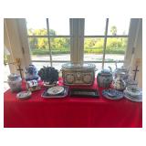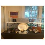 Main House: Very Fine Furnishings Throughout Antique Mirrors Easton Press & Antique Books Lalique, Baccarat , Val St Lambert and Waterford Crystal Tiffany Items Fine Art by Duffy Staffordshire Dogs (pair) Fine Silverplate Items Murano, Malis & Jaffee and Other Signed Art Glass Blue Coral Décor Antique Camphor Trunk Annie Glass Fabian Jouvin Paris Décor Miessen Blue Onion China Spode and Other Blue/White Collections Vintage Hobnail Glass Kosta Boda Large Mother of Pearl Jewelry Chest Vintage Hotel Key Collection Lacquer Game Table and Chairs