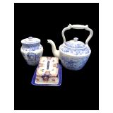 Kitchen Wing: Villeroy & Boch Casa Azul China Hobnail Glasses Calvin Klein Glassware Pantone Coffee Mugs Mottahedeh China Hutchenreuther Coffee and Teapots Limoges/Haviland Carrol Boyes Kitchen Items Antique Wedding Basket Rattan Armoire Vintage Daybed Vintage Asian Trunk Signed Art by Amanda Block