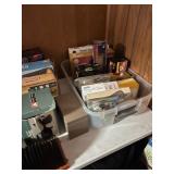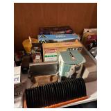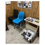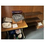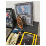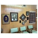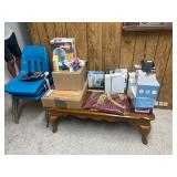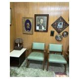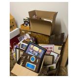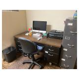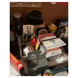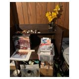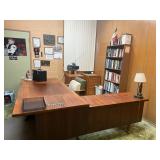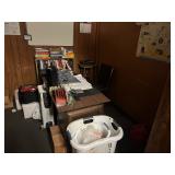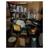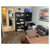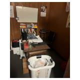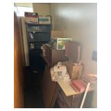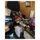 Mid Century furniture Tons of books Cigarettes vending machine Artwork Vintage electronics Book shelves Office supplies Mini fridge Desks Office chairs Filing cabinets Lamps Abraham Lincoln collection Globe Vorx Speakers Bar cart Dvd’s, VHS, CD’s Heaters Whiteboard Regulator wall clock Figurines HP printer Poker table