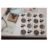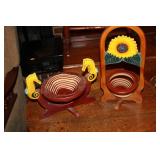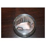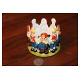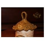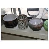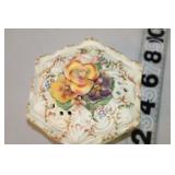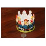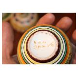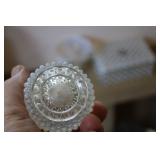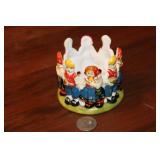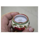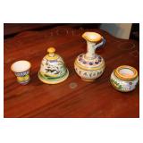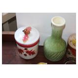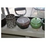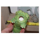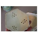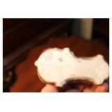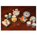 CATALOG TEXT BELOW: 1 - Lot of Miniatures-Mostly Wade Porcelains 2 - Lot of Wade Porcelain Figurines (and others) 3 - Lot of Porcelain Wade Figurines (and others) 4 - More Wade Porcelain Figurines Awwwww 5 - Porcelain Figurines 6 - Italian Candle Holders 7 - Capodimonte Flower Baskets 8 - Huge Lot of Miniature Animal Miniatures Many of these are Wade Pocelain. 9 - Irish Collection-Kennedy Homestead & Birthday Cott 10 - Porcelain Horses and Donkey 11 - Porcelain Dinosaurs & More 12 - Goebel Egg Cup & Italian Hand Etched Bell 13 - 2 Trinket Boxes Herand & Roma 14 - Vintage Decor Lot-Lefton & Goebel 15 - Capodimonte Pretties 16 - German Playset Tea and More 17 - Hummel Goebel Bell & Hummel Festival Plates 18 - 2 Hummel Figurines 19 - Antique Asian Figurine-Chinese Zodiac Rooster 20 - Vtg German Dutch Boy & Girl Porcelain Figurines 21 - Adlorable Animals All Sorts 22 - Lot of Assorted Items-All for one money! 23 - Goebel Trinket Box with Cat 24 - Czech Luster Creamer 25 - 2 Brass Umbrellas for Toothpicks 26 - Italian Pewter "I Love You" Message Mouse 27 - Scottie Dog Carved 28 - Vintage Aqua Blue Candleholder with Uranium 29 - Vtg Lefton Ashtray with Cigareette Holder 30 - 5 Art Cast Figurines-Angels, Cow & More 31 - Very Vinteage Las Vegas Roulette Ash Tray 32 - Early Silver Dollar City Ashtray 33 - Vintage "Never Spoll" Ash Tray 34 - Jadeite Ashtray 35 - Vintage Washington DC Sovenier Bowl 36 - Swarovski Bird Crystal 37 - Harmony Kingdom Toad "Awaiting a Kiss" Box 38 - Blown Glass Tree with 3 Butterflies BEAUTIFUL 39 - Goebel Annual Crystal Glass Bell 1979 40 - Vintage Occupied Japan Hand Painted Bust Lamps No wiring and someone converted these to use as candle holders which is brilliant. 41 - Lefton (Japan) Birds on Wishing Well Basket 42 - 2 Pedestles 43 - Frankoma Pottery Turtle 44 - 4 Vintage Ashtrays 45 - Vintage Ashtrays 46 - Vintage Ashtrays 47 - Vintage Ashtrays Blue Delft and More 48 - Occupied Japan Sairey Gamp Toby Mug Charles Dickens Character from "Martin Chuzzlewit" 1945-52 49 - Swarovski Crystal Fox 50 - Vintage Ashtrays 51 - Mid Century Metal Cigarette Set--Case & 4 Trays 52 - 3 Kewpie Baby Figurines by Lefton 53 - 2 Vintage Ashtrays--Joplin Missouri 54 - Vintage German & Bavarian Ashtrays-- 55 - Vintage Lefton Hand Painted Ashtray 56 - Cast Iron Frog Ashtray 57 - Vintage Occupied Japan Leaf Ashtrays 58 - Vintage Ashtrays 59 - Vintage Ashtrays 60 - Amber Glass Coal Hog Ashtray & Metal Trays 61 - Cloisenne Ashtray/Aztec, Copper and Others 62 - Vintage Pretties 63 - Leprechaun & Irish Lovers Lot 64 - Norman Rockwell Plate Saturday Evening Post 65 - Goebel Blue BIrd and Another 66 - Vintage Amber Glass Salt Cellar 67 - 3 Pfaltzgraff Pottery Ashtrays 68 - 2 Glass Door Knobs 69 - German and Italian Porcelain Baskets 70 - Vintage Pretties-Dresden & Czech 71 - Fisher Jewel Ashtray & Pottery 72 - Set of Nesting Ashtrays 73 - Footed Shell Shaped Ashtrays 74 - Pottery "House" Ashtrays 75 - Cast Iron Ashtrays 76 - 2 Hudson Pewter Coasters with Flowers 77 - "No Parking" Fire Hydrant Dog Peeing 78 - Very Small Butter DIsh 79 - Satin Glass Ashtrays with Uranium 80 - Royal Caribbean Porcelain Ship 81 - Department 56 Snowbabies "Extra Special Delivery" 82 - Coal Port & Capodimonte Flowers 83 - 2 "Japan" Baskets 84 - Fenton Cat-SIgned 85 - 2 Western Germany Lead Crystal Sugars or Condiment 86 - 2 Uranium Glass Floor Protectors 87 - Capodimonte Lidded Box and 2 Flower Baskets 88 - Kewpie Mermaid Figurine & Baby Figurine 89 - Alabaster Smoking Set Lighter & "Trays" 90 - 2 PIeces of Frankoma Pottery 91 - 4 Frankoma M2 Beer Steins Praire Green 92 - Frankoma Pottery Plates 93 - 3 Pieces of Frankoma Pottery 94 - Frankoma Pottery Prairie Green Square Planter 95 - 2 Frankoma GOP Political Elephant Mugs 96 - 2 Frankoma Pottery Political Mugs 1978 97 - Groovy Mid Century Frankoma Pottery Ashtray 98 - 2 Frankoma Pottery Vases 99 - 4 Frankoma Pottery Coffee Cups 100 - 4 Assorted Frankoma Coffee Cups/Mugs 101 - Vintage Swan Dish 102 - Large Collection of Porcelain-Dogs, Vases & More 103 - Assorted Salt Cellars - All for one money! 104 - Frankoma Oil Rig & Native Indian Teepees S/P 105 - 3 PIeces of Frankoma Pottery 106 - 2 Frankoma Pottery Trivets 107 - Turle, Bear and Frog 108 - Assorted Collection of Porcelain WOW 109 - 2 Collectors Plates COA--Scarlett, Little Lamb 110 - Wizard of Oz Collector Plate "Over the Rainbow" 111 - Lot of Plates-Chokin & Others 112 - Swarovski Crystal Pig 113 - Vintage Christmas Angel--"December" Napco 114 - 3 Frankoma Pottery Coasters 115 - 2 Frankoma Pottery Christmas Plates 1970 & 72 116 - Uranium Glass Sherbet Desert Bowl 117 - Uranium Glass Salt Cellar 118 - Irish Pottery Creamer, Sugar & Pewter Horse 119 - 2 Czechoslovakian Porcelain Swan Bowls 120 - Vintage Fenton Amber Hobnail Glass Slipper or Shoe 121 - Antique Mustache Cup 122 - Irridescent Bird Figurine 123 - 1984 Hummel "Little Fiddler" Plate & Goebel Bird 124 - Westmoreland English Hobnail Nut Dish & Another 125 - Vintage "High Wire Walker" Ash Tray WOW 126 - Frankoma Pottery Duck Planter 127 - Frankoma Pottery 97V Barrel Cookie Jar My reference lists these as 'Cookie Jars" although they seem pretty small for that. Anyway, it's marked Frankoma 97V on bottom 128 - 2 Pieces of Frankoma Pottery 129 - Frankoma Pottery 70A Orange Planter 130 - Porcelain Jack-o-Lantern & Felt Matt 131 - Turned Wood Lamp 132 - MCM Frankoma Pottery Casserole Stand WA3 133 - Wedgewood Blue English Vase and Dish 134 - Gillinder & Sons Frosted Lion Bowl & 3 Face Toothp 135 - Vintage Viking Glass Rooster & Chicks 136 - 4 Alabaster and Stone Ashtrays 137 - Missouri Cup/Saucer Crown/Staffordshire 138 - Set of 4 Givenchy Plates with Flowers 139 - Assorted Frog & Toad Figurines 140 - Animal Miniatures & More 141 - Wedgewood Plate & 2 Ashtrays 142 - Assorted Frogs and Toads 143 - Assorted Glass Birds-Some Signed/Dated 144 - Blown Glass Tear Drop Crystals 145 - ASSORTED Wood Curiosities from Around the Globe 146 - Vintage Ashtrays-All for one mon