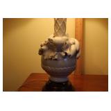 1438 - Carved Wood Animals, Brass Planter, Gord