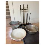 - Lot #9 - Vintage Fireplace Tools, Large Enamel Wash Basin, Scuttle Bucket & Forging Tongs