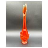 - Lot #17 - Vintage 13" Mid-Century "Viking" Orange Cabbage Leaf Swung Glass Vase