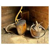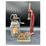 - Lot #32 - Antique Metal Farm Master Egg Scale, Antique Churn & Antique National Bottle Capper
