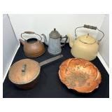 - Lot #95 - Vintage/Antique Teapots, Copper Cooking Pan & More