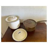 - Lot #289 - Antique Copper Pot, Enamel Cauldron & Misc. Enamel Lid