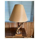 - Lot #308 - Vintage Brass/Glass Flintlock Table Lamp - (Works)