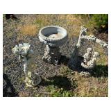 - Lot #346 - Heavy Cement Planter & Two Pieces of Resin Yard Decor