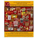 C & A AUCTIONS LIVE AUCTION SUNDAY, SEPT. 22 @ 10AM OUTDOOR AUCTION STARTING AT 8:30AM AND INDOOR AUCTION AT 10AM EARLY PREVIEW 8AM UNTIL SALE TIME LIVE WITH INTERNET BIDDING OPENS AT 10:45AM 850 NC HWY 22 SOUTH, RAMSEUR NC 27316
