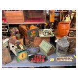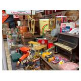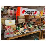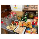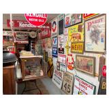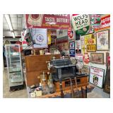 VERY PARTIAL LISTING: NC/VA POTTERY, ADVERTISING SIGNS AND THERMOMETERS, COLLECTION BLACK AMERICANA ITEMS, ADV. TINS AND BOXES, PRIMITIVE ITEMS, EARLY PRIM. FURNITURE, COLLECTION STERLING ITEMS, FIRE KING, COLLECTION VINTAGE GLASSWARE, HERON CHINA, COLLECTION POSTCARDS, JAPANESE ITEMS, MILITARY ITEMS, COUNTRY STORE ITEMS, MAJOLICA CHINA, EARLY DUCK DECOYS, EARLY WOODEN KITCHEN ITEMS, COSTUME JEWELRY, SILVER COINS, FISHING ITEMS, ALADDIN OIL LAMPS, DISPLAY CASES, VINTAGE MESH PURSES, EARLY TOYS, WALNUT,OAK AND MAH. FURNITURE, LEATHER BOND BOOKS, COMPOSITION DOLLS, STACKING BOOKCASES, POCKET WATCHES, EARLY BOTTLES AND JARS, MID CENTURY FURNITURE, WATT POTTERY, GOLD COINS, 2OZ SILVER ROUNDS, SIGNED ARTWORK, KNIVES, EARLY TOOLS, CLOCKS, EARLY PEANUT ROASTER, COFFEE GRINDER, TOBACCO TINS AND SIGNS, STORE DISPLAYS, FLOW BLUE CHINA, BARBIE ITEMS, COLLECTION BRASS/COPPER FIRE EXTINGUISHERS, DENTAL CABINET, 9PC. ORNATE OAK DINING SET W/ 5 LEAVES, EARLY WOODEN COFFIN, WICKER FURNITURE, MUCH MORE! SEVERAL UNADVERTISED ITEMS TO BE SOLD! 1000+ TOTAL LOTS TO BE SOLD TO HIGHEST BIDDER.