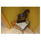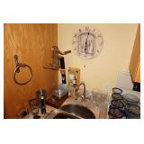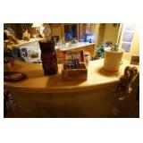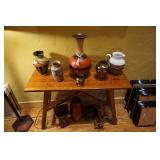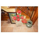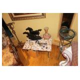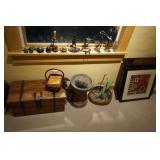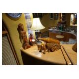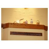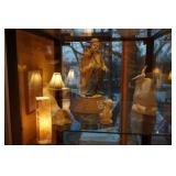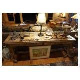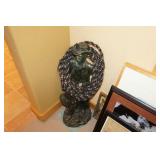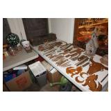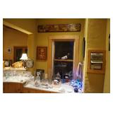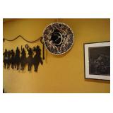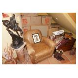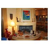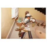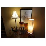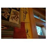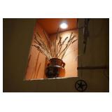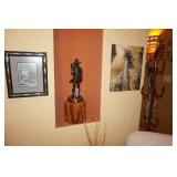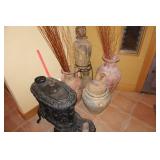 Large assortment of terra cotta floor vases, Wrought iron cowboy hat tree, Floral arrangements, Antique milk can umbrella bucket, One of a kind metal wall art, Candelabras, Steamer trunk, Tons of western and Native American Indian decor from "The Arrangement", Hand carved wooden sculptures, Oil paintings, Decorative crosses, Tiffany style floor lamp, Art vases, Large assortment of fine prints, lithographs and photos, Accent pillows, Table lamps, Desk lamps, Floor lamps, Stretched leather lampshades, Original watercolors, Copper decor, Chainsaw carved bear and Indian, Wicker items, Horse statues and sculptures, Decorative wine bottle opening accessories, Hand hammered aluminum and pewter items, Barbed wire metal wall art, Framed mirrors, Stained glass, Large assortment of quality rugs and runners, Clocks