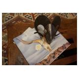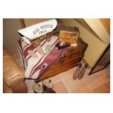 Native American Indian rugs, horse blankets and Tapestries, Antique Sessions mantle clock, Raven Shadow signed and numbered wolf sculpture, Taxidermy "howling" coyote, Large Frederick Remington "Mountain Man" bronze, Antique ornate cast iron stove, "Local" Grapevine night watchman bronze by Jack Bryant, Hand blown Italian Murano red glass chandelier, Assortment of hand signed Turquoise and Sterling Indian Jewelry, Large Assortment of original signed art, Toby mugs, Cigar humidor, Hand tooled leather items, Hand signed artwork by Pena, Hand signed Pena lithographs, Lucchese exotic skin cowboy boots size 10d, Antique quilts, J.A. Henckels cutlery, Vintage Toledo sword, Vintage movie projectors, Model trains, Autographs,