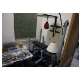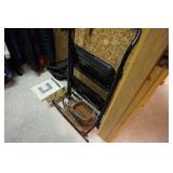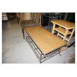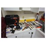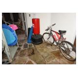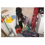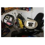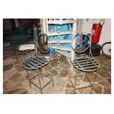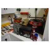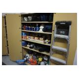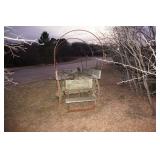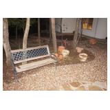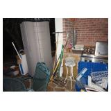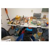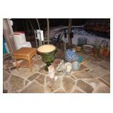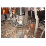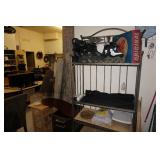 Milwaukee Jobsite radio, Power tools, Hand tools, Karcher pressure washer, Golf clubs, Tennis rackets, Remote controlled boats, Electric blower, Hedge trimmer and weed eater, Shop vac, Hardware, Weight benches, Everlast speed bag, Storage cabinets, Ladder, Garage and household chemicals, Gardening supplies, Antique tools, Fishing rods and reels, Imversion table, Authentic antique cowboy covered wagon, Large amount of hand made metal yard art sculptures, Assortment of terra cotta pots and planters, Outdoor benches, Several patio sets, Garden carts, Yard tools, Folding tables and chairs, Outdoor cactus motif wrought iron barstools, Ice chest, Bird baths, Live plants, Fish fryer,