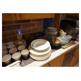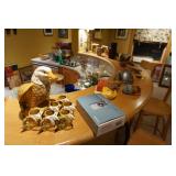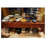 Italian ceramics, Hand signed American pottery, Large assortment of Terra cotta, Hand blown art glass, Vintage carnival and depression glass, Hand painted stemware, Waterford Crystal, Lladro, Mikasa, Demitasse sets, Nikko Christmas China, Corning, Pyrex, Large assortment of quality stemware, ACI Janice pattern China, Cut Crystal, Vintage pressed glass, Johnson Brothers England, Beer steins, Crystal whiskey decanters, Biscuit jars,