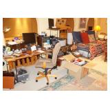One of a kind rustic Hill Country entry/sofa table, Wrought iron base stone top table with petroglyph carvings, Henredon lowboy arm chair with matching ottoman, Three matching Gabbert's upholstered arm chairs, Hancock & Moore upholstered ottoman with Santa Fe style accents, Three piece heavy wrought iron Barstools with longhorn motif, Rustic pine accent tables, National Mt. Airy cedar dresser, mirror and matching nightstand, Morrelli hand carved Anasazi Santa Fe / Mission style dining table with leather accented captains chairs, Sam Moore southwestern accent chairs, Tomlinson Erwin-Lambeth big boy sofa, Oversized rustic mission door coffee table, La-Z-Boy brown fabric recliner, Old Hickory Tannery leather arm chairs, Wrought iron and distressed leather stool, Cushman Colonial small dark cedar chest, Wrought iron and wood Hill Country accent tables, Mission style entry/sofa table, Crescent Court collection upholstered arm chairs, Wicker and rattan furniture, Hand painted wrought iron and carved wood file cabinet, Antique Royal Furniture Company executive desk with inlays and carved accents, Old Hickory Tannery brown leather loveseat, Queen Anne accent tables, Ethan Allen custom finished chest, Antique primitive drop front secretary with carved scrollwork, Distressed brown leather arm chair, Matching white upholstered arm chairs with floral pattern, Ornate antique drop front secretary with claw feet and scroll work, Contemporary dark wood dining table with six leather padded chairs and slate inlay, Mission style dining table with four chairs, Set of four matching contemporary microfiber chairs, High gloss birds eye maple Cantoni conference table with twelve chairs, Unique Cantoni "artist palette" dining table with modern leather wrapped chairs, File cabinets, Executive leather office chairs, Antique woven seat chairs, Book shelves, Matching traditional style executive desk and credenza, Wrought iron hutch, Misc contemporary modern office furnishings, Contemporary dark wood a/v tower, Contemporary modern accent tables and side tables, Native American style accent chairs from "The Arrangement", Wrought iron and grouted stone top accent table, Set of four maple bar stools, Pine log accent table, Wrought iron day bed with trundle, Old Hickory Tannery brown leather armchair with matching ottoman, Set of four folding mission style card table chairs, Rustic wrought iron and pine office grouping, One of a kind modern steel, slate and wood accent table, Two queen pine log beds with matress sets, Vintage Ethan Allen chest, Rolling leather desk chairs, Pair of Ergohuman ergonomic rolling desk chairs, Vintage Ethan Allen bookshelf/credenza, Wrought iron and glass accent tables, Blue painted rocking chair,